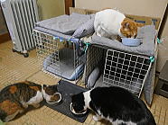 | 5時36分、ミィミィとチャーとコロの朝ごはんタイムです。 |