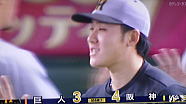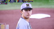 | 6回裏2死、ピンチの場面でルーキーの工藤泰成投手に交代。ここを三振で抑えて凌ぎます。藤川監督、采配が冴えていますね。 |