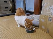 | 5時31分、ミィミィとコロの朝ごはんタイムです。 |