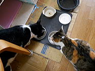 | 6時33分、ミィミィとチャーの朝ごはんタイムです。 |