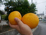| 念仏堂の柑橘を2個ほど収穫しました。そのうち1個は帰宅後に食べました。ご馳走様でした。 |