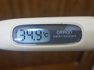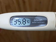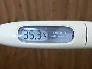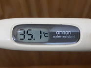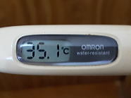 | 今朝の天気は晴れのち曇りです。体温は昨日と同じく 35.1℃でした。 |