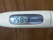 | 今朝の天気は晴れのち曇りです。体温は35.5℃でした。 |