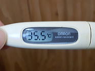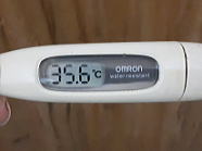 | 今朝の天気は晴れです。体温は35.6℃でした。 |