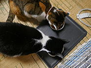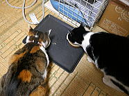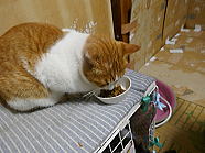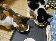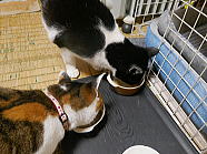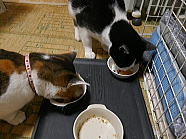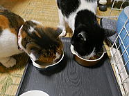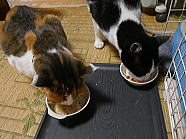 | 14時42分、ミィミィとチャーのお昼ごはんタイムです。 |