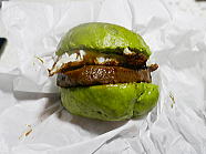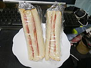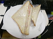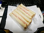10時18分、朝食は丸大ハンバーグサンド1個です。