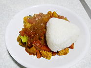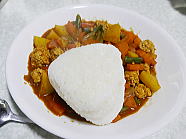 13時07分、昼食は鶏団子入りのカレーライスです。