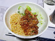 | 19時07分、晩ごはんはノンフライ麺の焼きそば風です。鶏肉と茹でたキャベツが付け合わせ。ご馳走様でした。 |