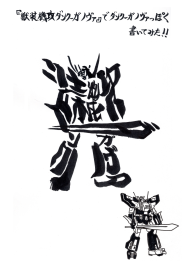 | 今日の昼のイメージ習字は、『機動戦士ガンダムF91』 (シルエットモチーフはF91) です。 |