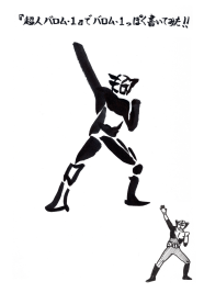 | 今日の昼のイメージ習字は、『仮面ライダースーパー1』 (シルエットモチーフは仮面ライダースーパー1) です。 |