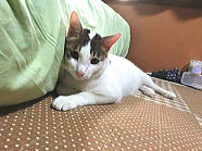 | 深夜1時00分、布団の上でスタンバっているチャー。 |