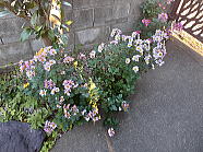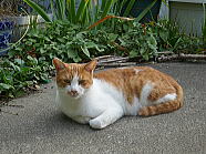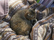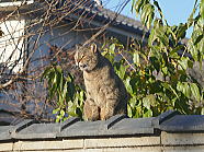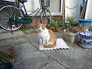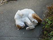 | 9時42分、帰宅。庭でチャーが日向ぼっこしていました。 |