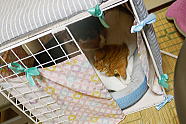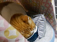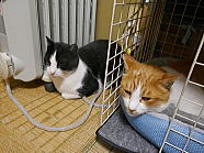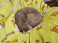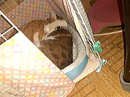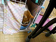 | 朝ごはんを食べ終えたミィミィとチャーはちぐらに入って温め合っていました。 |