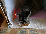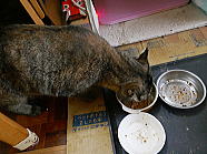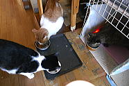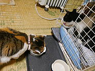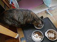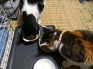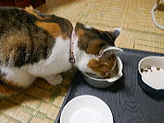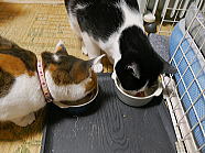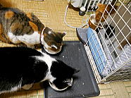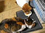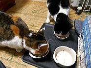 | 7時24分、ミィミィとコロの朝ごはんタイムです。 |