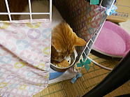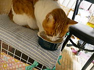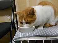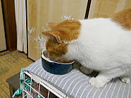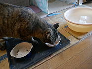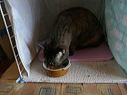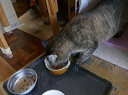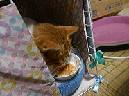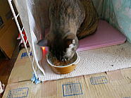 | 同じく5時25分、チャーの朝ごはんタイムです。 |
