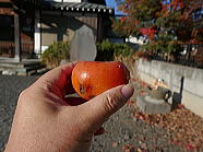 | 8時22分、念仏堂で今年最後のうんだら柿を収穫。 |