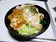 | 20時06分、晩ごはんは豚とじ丼です。ご馳走様でした。 |