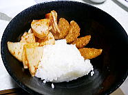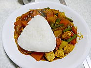 | 13時47分、昼食は鶏団子入りカレーライスと―― |