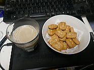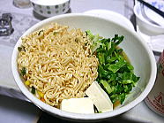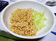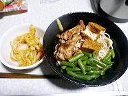 | 21時05分、晩ごはんは温・冷や麦と白菜の浅漬けです。ご馳走様でした。 |