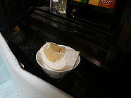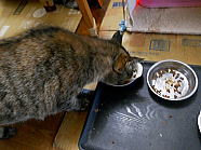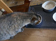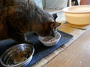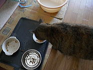 | 8時56分、猫の食事皿を綺麗にしました。 |