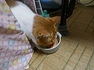 | 7時28分、チャーの朝ごはんタイムです。 |
