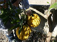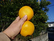 | 15時50分、念仏堂で柑橘を2個収穫しました。 |
