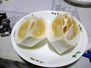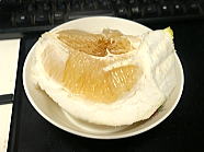 | 20時53分、今日収穫した鬼柚子を食べました。 クセの無いまろやかな味でした。ご馳走様でした。 |