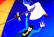 | ヤケクソ気味に『酸素破壊爆弾』と共に東京上空での自爆を謀る大首領でしたが、8人ライダーのエネルギーを結集させたセイリングジャンプによって―― |