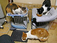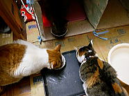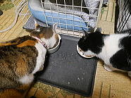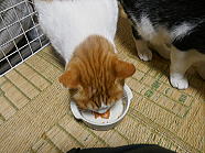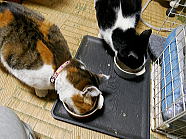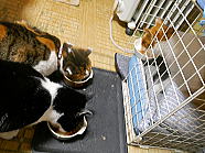 | 5時25分、ミィミィとコロの朝ごはんタイムです。 |