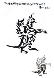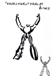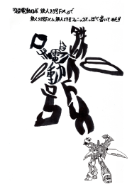 | 今日の昼のイメージ習字は『超電動ロボ 鉄人28号FX』 (シルエットモチーフは鉄人28号FXと合体した鉄人17号フェニックス) をアップしました。 |