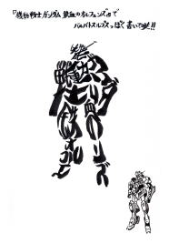 | 今日の昼のイメージ習字は『機動戦士ガンダム 鉄血のオルフェンズ』 (シルエットモチーフはバルバトスルプス) をX (旧Twitter) にアップしました。 |