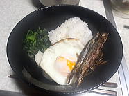 13時08分、昼食はあり合わせ丼です。