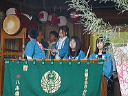 | 子どもたちが、うちわ祭りのお囃子を叩いていました。 |