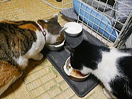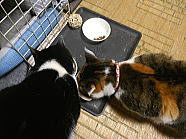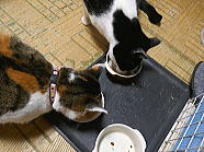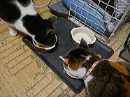 | ミィミィとコロの朝ごはん光景です。 |
