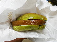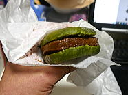 23時33分、夜食に青汁バーガーを食べました。