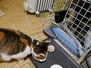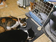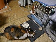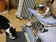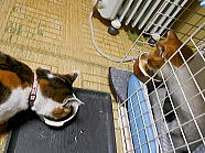 | 7時43分、ミィミィとコロの朝ごはんタイムです。 |