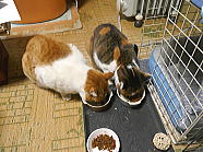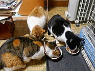 | ミィミィとチャーとコロの朝ごはん光景です。 |