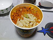 | 22時09分、晩ごはんはノンフライ麺のトマトラーメン (?) です。ご馳走様でした。 |