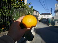 | 11時20分、念仏堂の柑橘を2個収穫しました。 |
