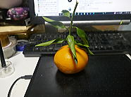 | 9時32分、朝食前、昨年末に念仏堂で収穫した柑橘を 1個食べました。ご馳走様でした。 |