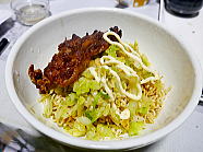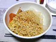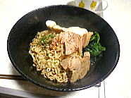 | 19時47分、晩ごはんは、ノンフライ麺のニンニク醤油味ラーメンです。ご馳走様でした。 |