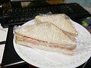 | 10時28分、朝食はハムサンド1個です。ご馳走様でした。 |