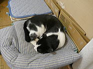 | 21時27分、ミィミィとチャーが1つのちぐらの中で仲良く寝ていました。おやすみなさい。 |
