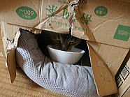 | フックは朝ごはんを段ボール箱の中で食べました。 |
