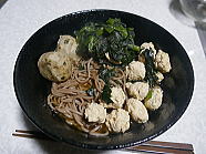 19時25分、晩ごはんは鶏団子入り蕎麦です。