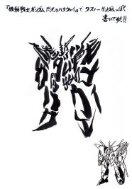 | 今日の昼のイメージ習字は『機動戦士ガンダム 閃光のハサウェイ』 (※シルエットモチーフはクスィーガンダム) です。 |