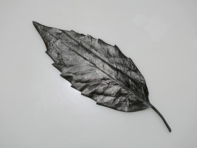 今回使用したのは、近所で採取したアオキの葉を、5日間グリセリン水溶液に浸け、