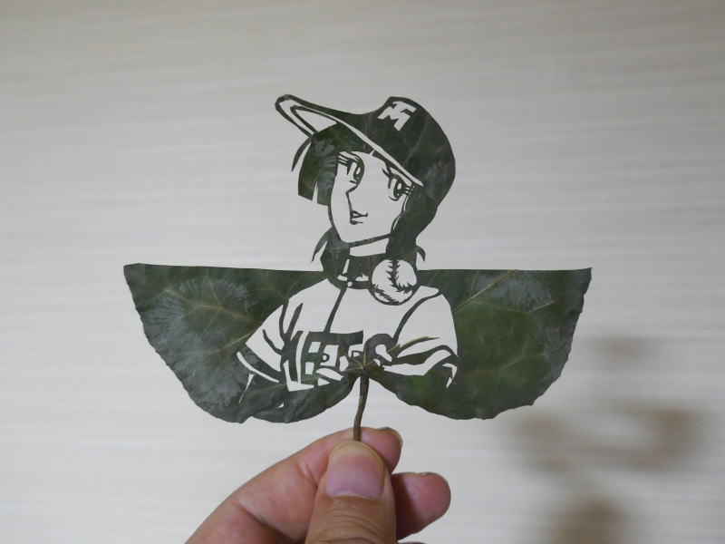 ●『野球狂の詩』に登場する女性投手、水原勇気の葉っぱアートです。(UP-DATE:2025.08.03)