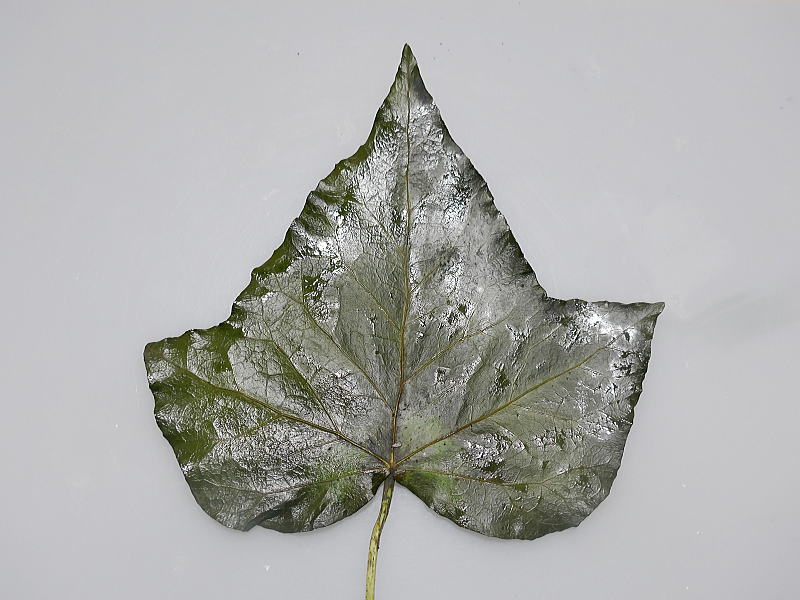 今回使用したのは、近所で採取した蔦の葉を、5日間グリセリン水溶液に浸け、5日間 押し葉にしたものです。