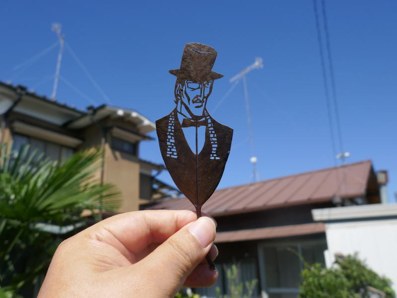 ●『タイガーマスク』に登場する、プロレスラー養成機関"虎の穴"のマネージャー、ミスターXの葉っぱアートです。